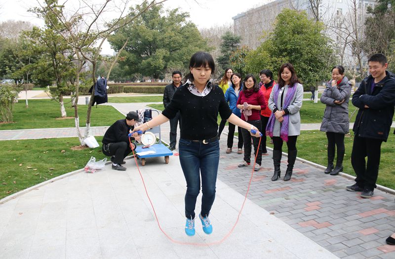 教师报名参加,每一位参加项目的老师在挥洒汗水的同时,脸上也都洋溢着灿烂的笑容。经过奋力拼搏,张萍、韩纪琴和胡新分别获得跳绳、踢毽子和一分钟限时颠乒乓球的第一名。