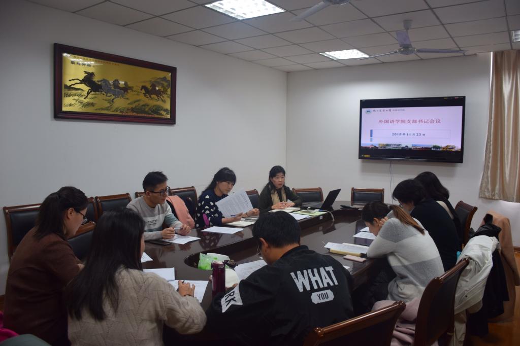 首先,韩纪琴传达了11月13-15日在浙江师范大学召开的“教育部国别与区域研究备案中心第四次交流会暨非洲中心建设专题研讨会议”精神,具体分享了浙江师范大学非洲研究中心、北京语言大学、北京外国语大学、中国农业大学等高校的国别研究实例。韩纪琴指出,国别与区域研究作为外国语言文学学科发展的一个新领域,越来越受到教育部及相关高校的重视。我校也非常重视国别与区域研究,希望深层次思考与学科结合的问题,做好顶层设计,将其作为学科取得突破的契机。同时,韩纪琴通过介绍北语“法语国家与地区研究”课程方案,分享了自己对农业走出去视角下的复合型人才培养的思考,鼓励支部书记们做好师生党员的组织者和带头人,更多地考虑工作与学习如何服务于国家需求和学校的发展战略。