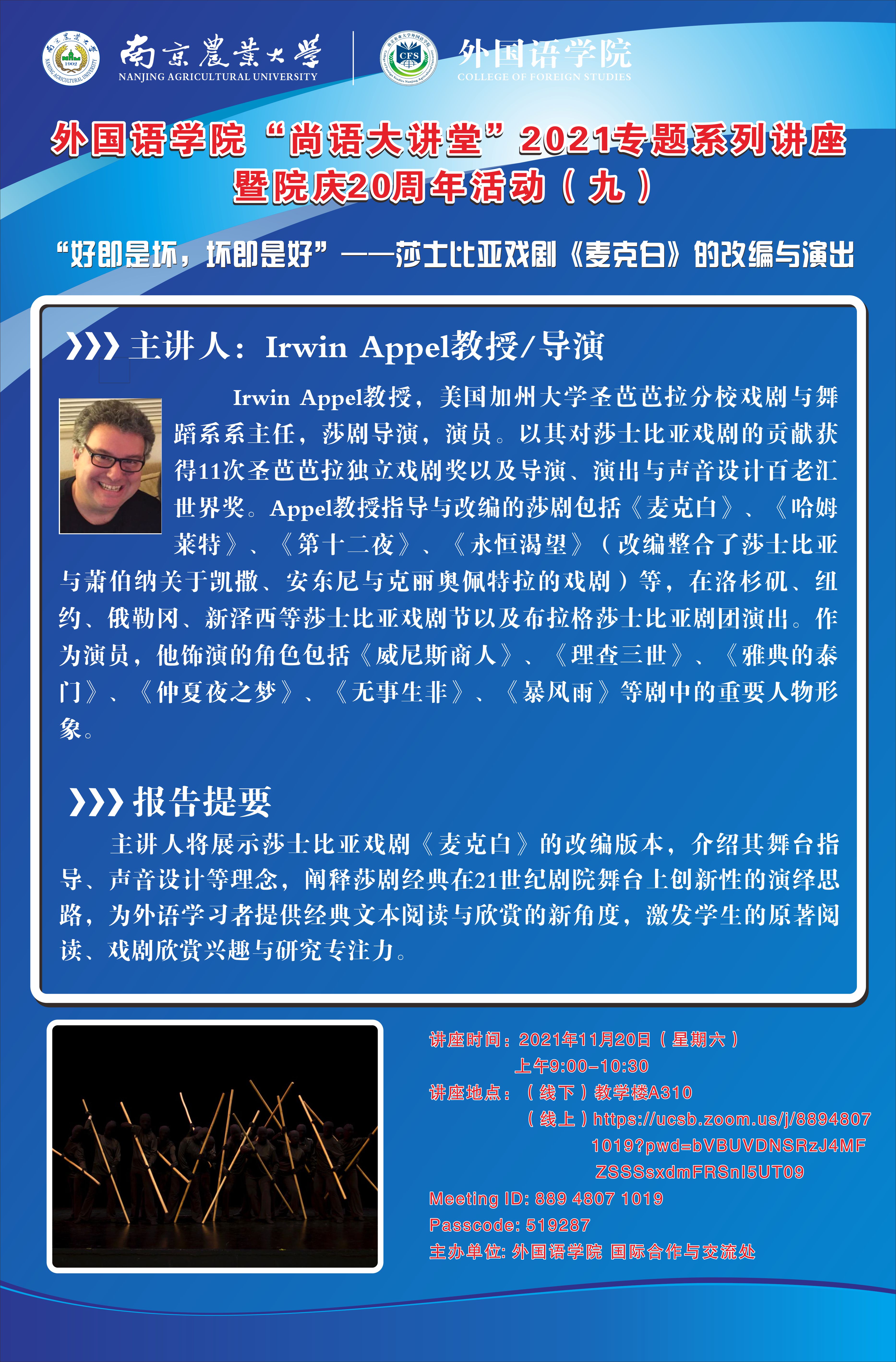 讲座时间:11月20日(本周六)上午9:00~10:30