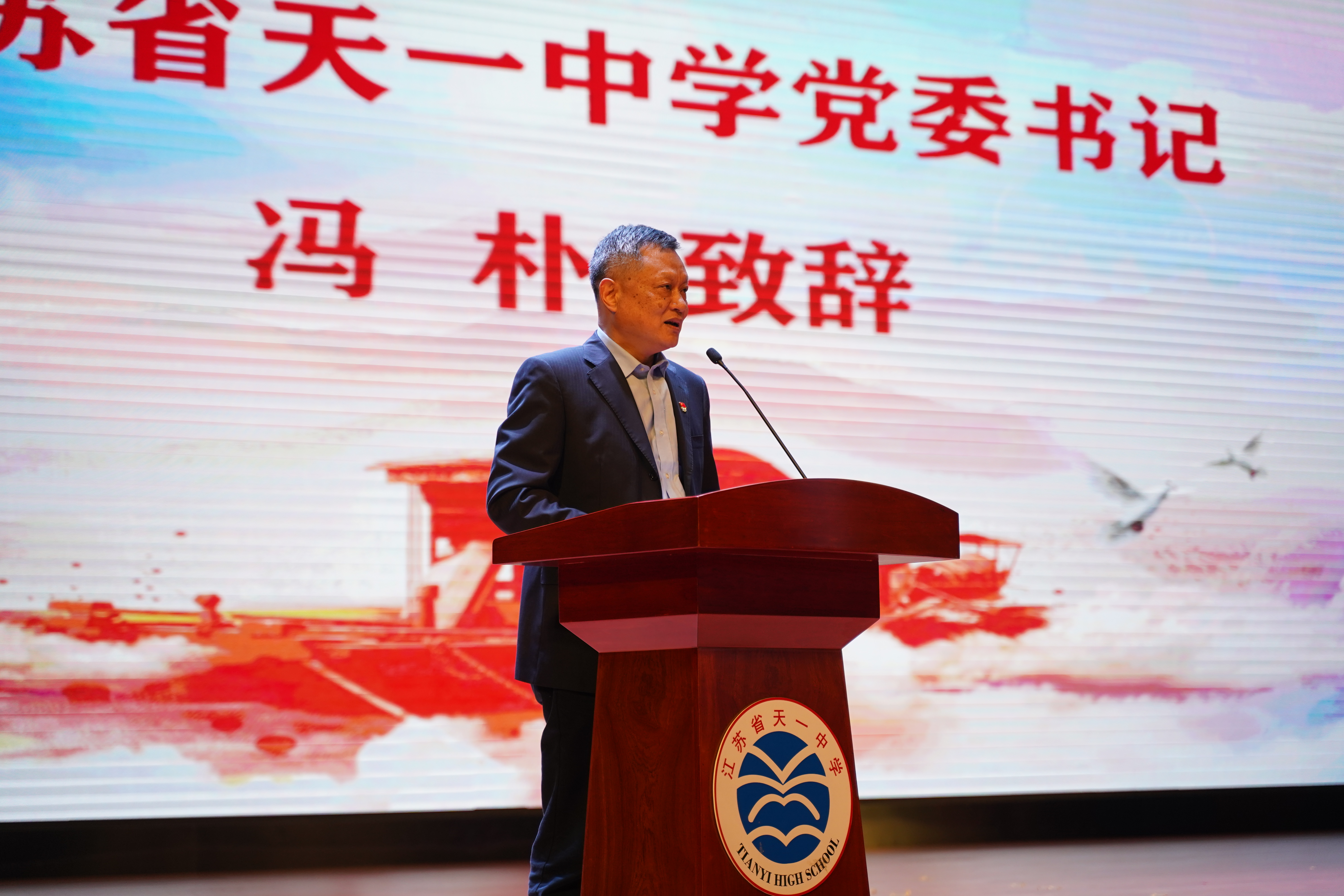 与江苏省天一中学近年来良好的合作关系;最后希望青年学生可以在党的创建历史中汲取前进的智慧和力量,不负总书记的殷切嘱托,不负青春,不负韶华,在攀登知识高峰中追求卓越,立大志、明大德、成大才、担大任。