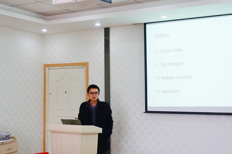 随后,田旭副教授做了题为“学生课堂学习效果评估”的报告。田旭列举了MSU数门课程评估方式,并与我校实际作对比。他认为在我校教学实际中,可以探索课程评价的创新,每门课程需要有详细的评分细则和大量的随堂测验,通过集中展示、小组讨论等环节检测学生的学习情况。