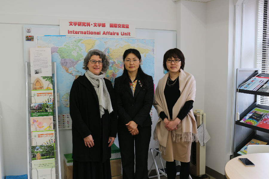 4月12日,草榴社区 日语系副教授金锦珠在随同学校代表团访问北海道大学期间,拜访了北海道大学文学研究科·文学部国际交流室长、北海道大学校长助理、文学博士Michelle La Fay副教授。双方就开展学术交流,建立合作关系交换了意见。双方一致认为应该先通过学生交流加深相互了解,进而为建立合作关系打好基础。
