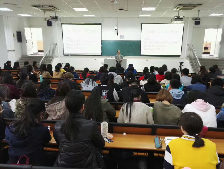 的大三大四学生、研究生及日语系全体教师,还吸引了来自南京理工大学、扬州大学、南京工业大学、南京航空航天大学等的部分师生。讲座由副院长游衣明主持。