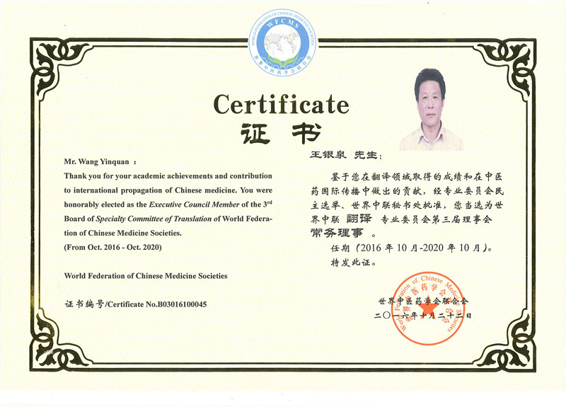 王银泉教授应邀出席并在理事会换届选举中当选该专业委员会的常务理事。王银泉同时在大会做了《16-18世纪在华耶稣会士中医西传活动考证》的学术报告,介绍了明末清初来华耶稣会士卜弥格、巴多明和殷弘绪通过翻译和科学考察报告等中西文化科技交流活动将中医文化传播到欧洲的历程。