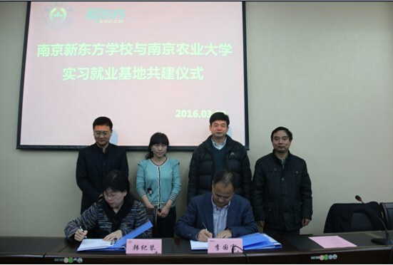 作为学校与新东方实习就业基地共建的依托单位之一,将努力工作,推进基地建设的成果化。“一个心中总是有梦想的人,不管他现在有多卑微,只要他在前行的路上,就一定能走出很远的距离”,韩纪琴引用俞敏洪的话送给在座的学子,希望他们有梦、追梦,并且通过努力实现自己的梦想。之后,李国富代表南京新东方发言。他介绍了新东方的理念和背景,并引用马云与俞敏洪学习外语的事例强调了学习外语的重要性,他期待南农能有更多优秀的学子为新东方注入新的活力。仪式最后,韩纪琴与李国富代表双方共同签署了共建就业实习基地协议。