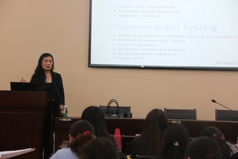 李梅教授同时还介绍了翻译本地化概念,指出所谓本地化就是跨国公司把特定产品转化成在语言和文化上都符合不同目标市场需要的产品的完整过程。提供优质本地化服务是技术翻译的核心价值,以客户需求为中心是技术翻译的核心理念。她表示,技术翻译与本地化服务涉及到本地化测试、本地化工程、本地化营销、本地化排版和本地化项目管理等诸多环节。翻译产品本地化不但需要做好文本翻译,更需要做好译本包装。