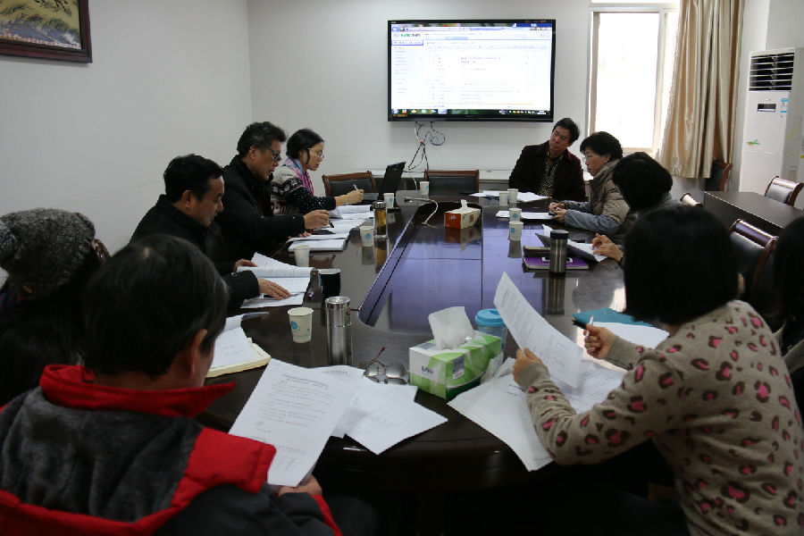 翻译硕士专业学位培养院校基本数据汇总表》等文件材料,对照评估指标体系对相关内容逐一进行了梳理和讨论,然后提出了修改意见和建议,并进行了自评打分。学院党委韩纪琴书记和王银泉副院长分别做总结评议,对《自评报告》、《基本数据表》等材料提出了具体的修改意见和总体要求。
