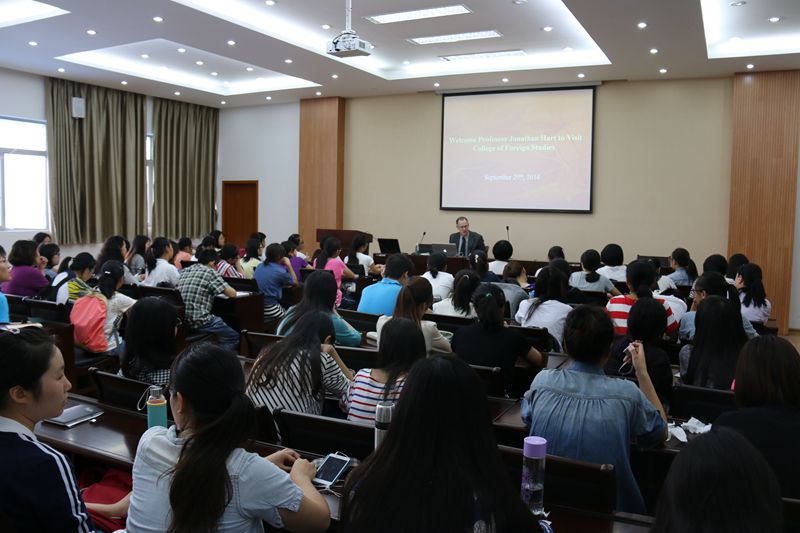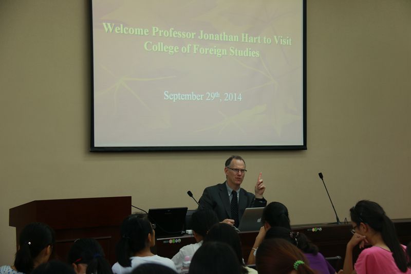 邀请,加拿大皇家学院院士、剑桥大学卡莱尔学院(Clare Hall)终身成员Jonathan Hart教授来我校讲学,与外语院师生畅谈文学、诗歌以及人文学科领域的研究。