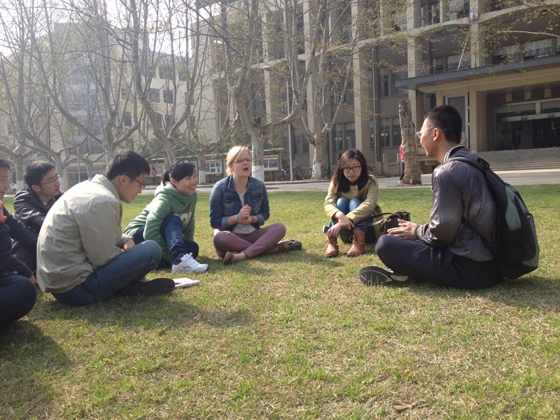 英语专业和非英语专业的共四个课堂,在任课外语老师的指导与组织下,与我校学生开展深度交流。交流主要围绕校园生活、文化差异、学术研究等方面展开。双方同学都十分珍惜此次交流机会,气氛异常活跃,甚至还一起唱起了英文歌曲。有些班级的交流还从课堂延伸到了校园优美的草坪。这是自去年之后草榴社区