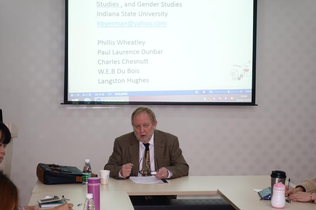 Byerman的讲座详细梳理了非裔美国文学及其批评在美国的发展历程,为聆听讲座的师生勾勒了一条清晰的非裔美国文学史及其批评史的脉络。讲座之后,参加讲座的师生与Byerman就讲座内容进行了热烈的讨论。