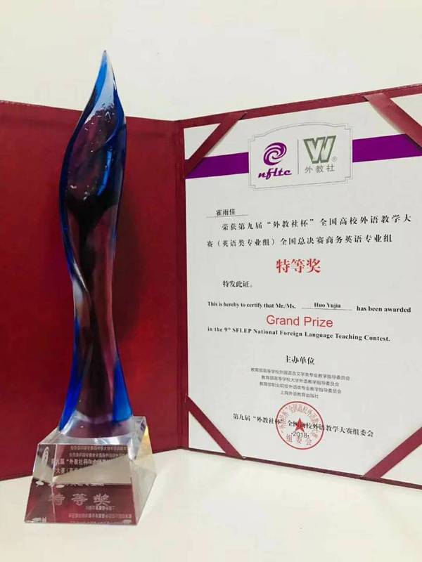 霍雨佳老师获得商务英语专业组特等奖(第1名)。这也是我校选手首次在这一大赛中获特等奖。