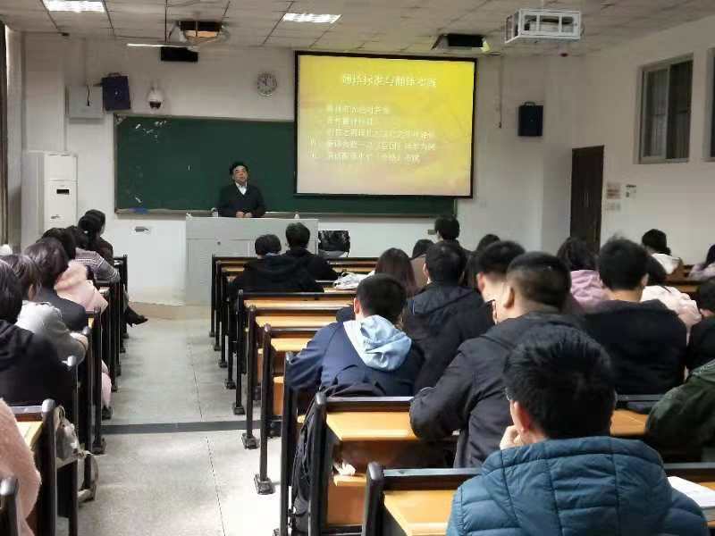 最后,徐教授赠诗一首,鼓励同学们为成为优秀的翻译人才而踏踏实实地努力。“语言不同隔千里,文化交流黄金链。笔译口译心相印,交传同传情相连。书山学海无捷径,中外古今记周全。百炼成钢促沟通,地球村里笑开颜。”徐一平教授生动详实的例子,风趣幽默的讲解风格,满腹的才华及高远的格局赢得了在场师生的阵阵掌声。