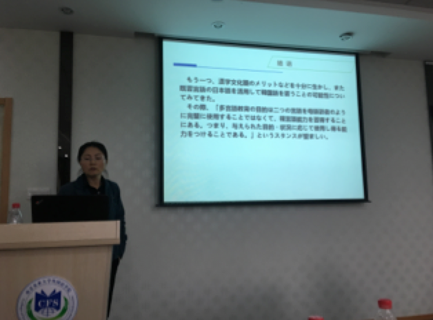 “日语系建设交流报告会”第三次会议在教学楼A310顺利召开。此次报告会特别邀请了田原老师出席,由日语系副教授金锦珠老师以「多言語社会における日本語教育」为题作了报告。报告会由石碧老师主持,学院日语系教师及部分研究生参加。金老师以中国的多语种社会状况为引子,汇报了面临转型的日语现状,探讨了在先进的语言习得理论之下,如何开展日语教育,培养出符合教育部大纲要求的日语人才。金老师的报告,引用了很多实例,生动地反映了日语教育的现状和问题,其中肯的建议对草榴社区