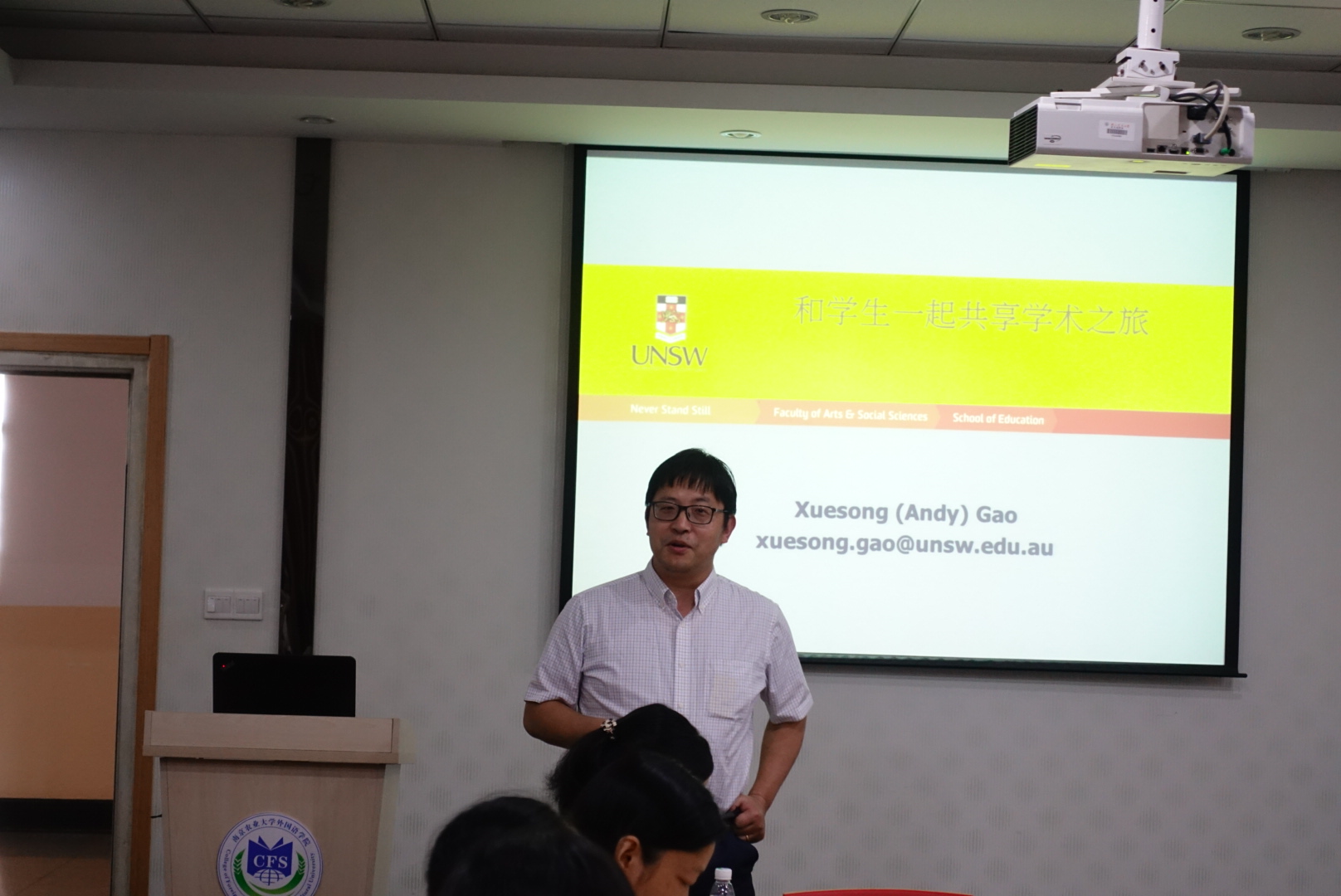 主办的“与学生共享学术之旅”的讲座,在卫岗校区教学楼A310顺利举办。本次讲座由新西兰南威尔士大学高雪松博士主讲,英语系裴正薇教授主持,草榴社区