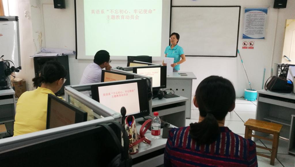 英语系教师支部召开“不忘初心、牢记使命”主题教育动员会。会上,张友琴同志向支部成员传达了本支部在10月至11月主题教育的详细学习计划。