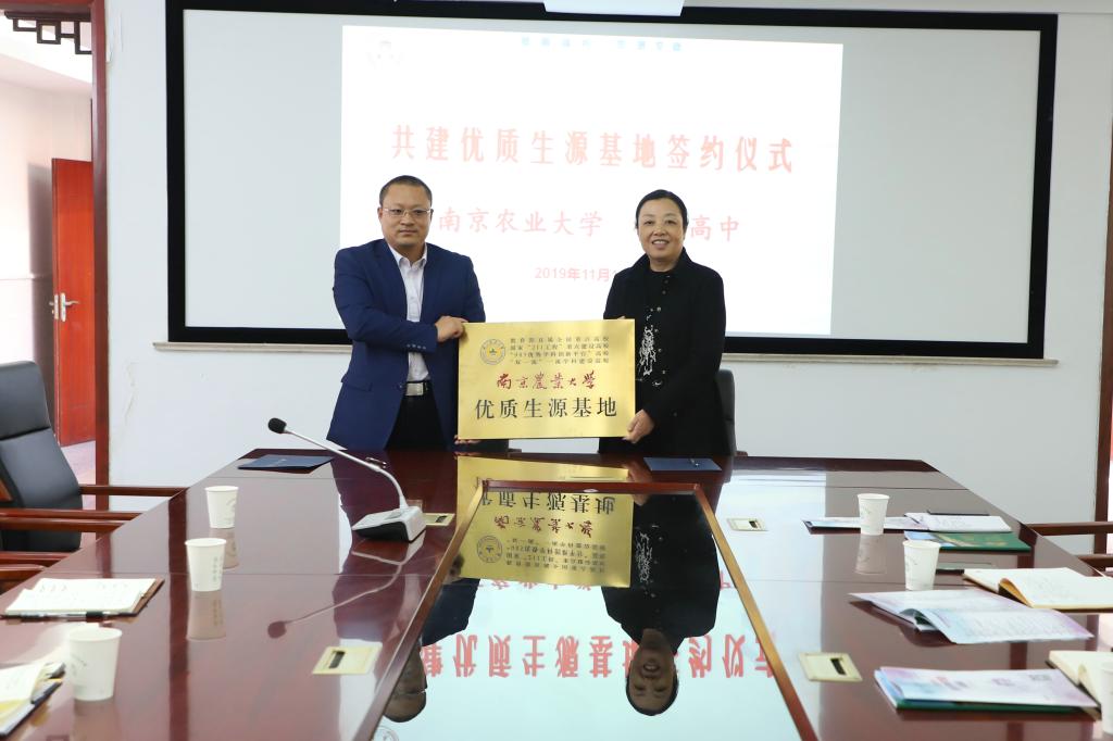 韩立新介绍了我校的历史沿革、专业设置、办学优势及学生就业等方面情况,对梅高向我校输送大批优质生源表示感谢。韩立新代表我校与梅中校长朱益民签订了共建协议,并进行了优质生源基地的授牌。