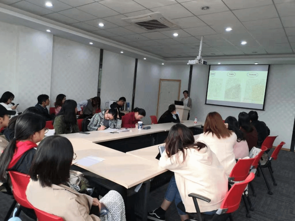 第三次英语专业研究生学术沙龙在教学楼A310举办。 2017级、2018级和2019级英语学术型和专业型硕士研究生共计38人参加了此次活动,胡新、李平和裴正薇三位老师来到现场进行点评和指导。