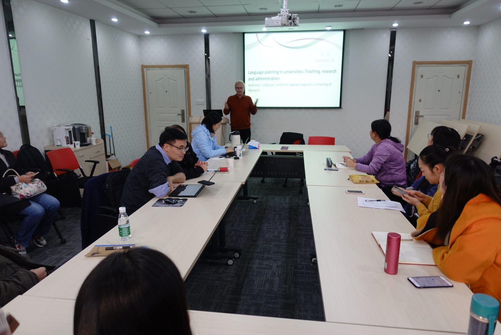 Liddicoat教授首先强调大学是处于国家层面的语言政策和个体使用者之间的中观层面的语言规划者。随着教育国际化程度的日益提高,语言使用和多语种问题成为大学实现教学、研究和管理功能的核心问题。他表示当代大学语言环境十分复杂,在很多欧洲国家和英语为官方语言的其他国家,不仅学生团体日趋国际化,本国学生的第一语言也越来越多样,但是在教学和研究中英语的核心定位却越来越显著。