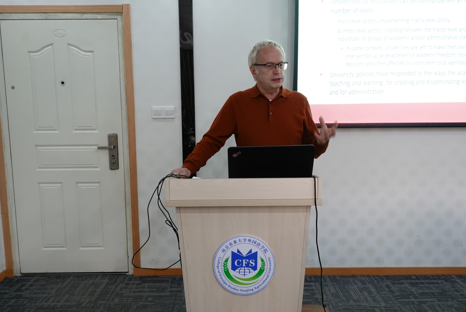 作题为“大学语言政策与规划:教学、研究与管理”的主题报告。本次讲座在卫岗校区教学楼A310举办,由草榴社区