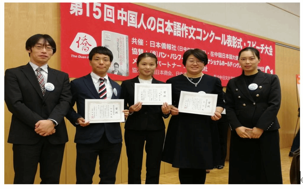 本次大赛共收到来自全国208所高校共计4359篇参赛作品,经过相关专家长达半年的严格评审,我校日语专业研究生刘伟婷荣获二等奖(指导老师:李红、仙翔太)、本科生乐伊凡(指导老师:仙翔太)、李羽鹏(指导老师:卢冬丽、仙翔太)、张栩(指导老师:小柳圭)三名同学等荣获佳作奖。同时,外院李红、仙翔太老师获“优秀作文指导教师奖”。据悉,获奖作文被收录于《东京奥运会,我想实现的梦想》一书,并于11月已在日本出版发行。