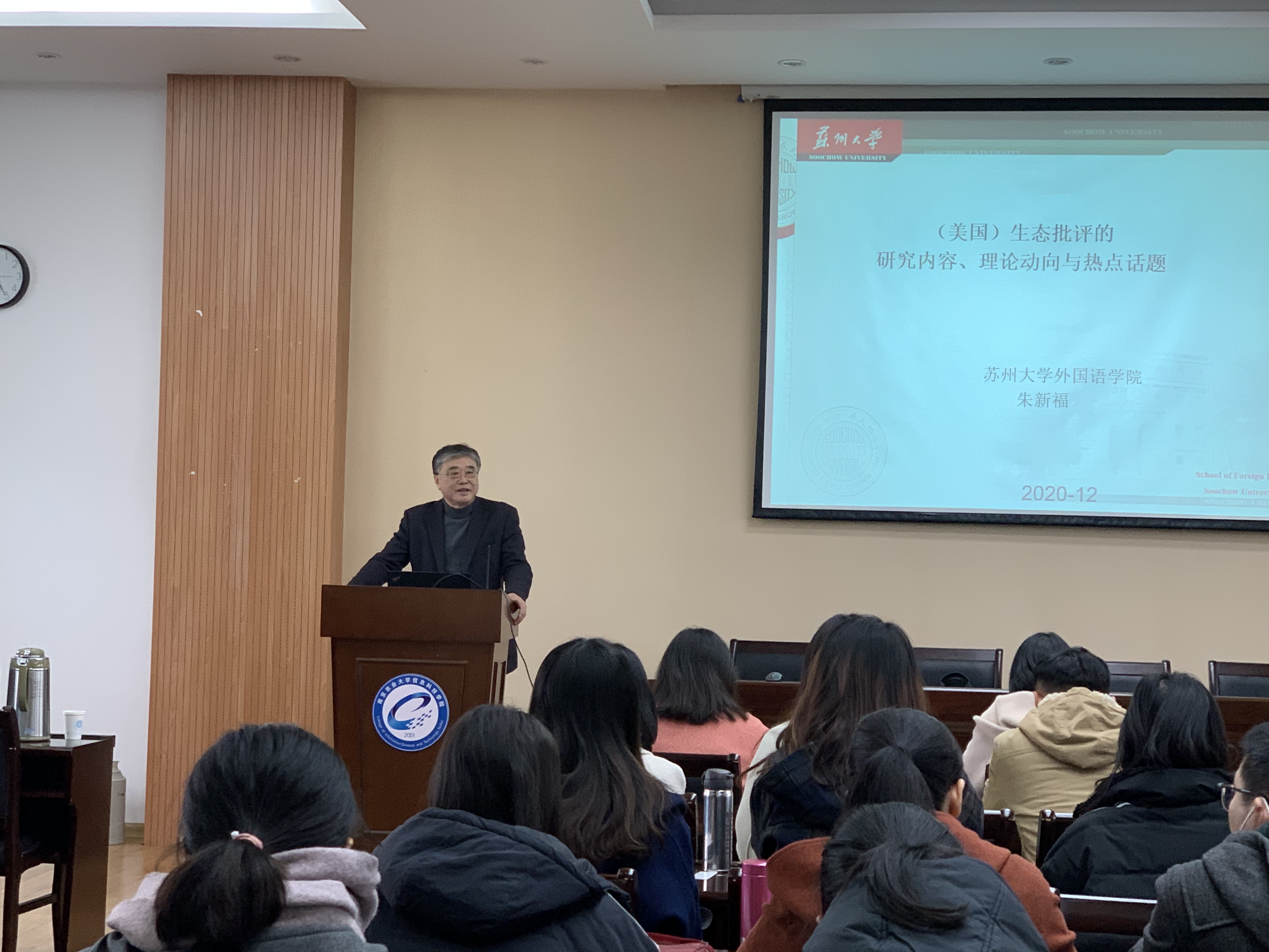 “外国语言文学的生态视角研究”系列讲座的第二场,朱新福教授在简述美国生态批评的基本信息的基础上,讨论(美国)生态批评的研究内容、主要动向、热点话题、存在的主要问题以及相关的研究。