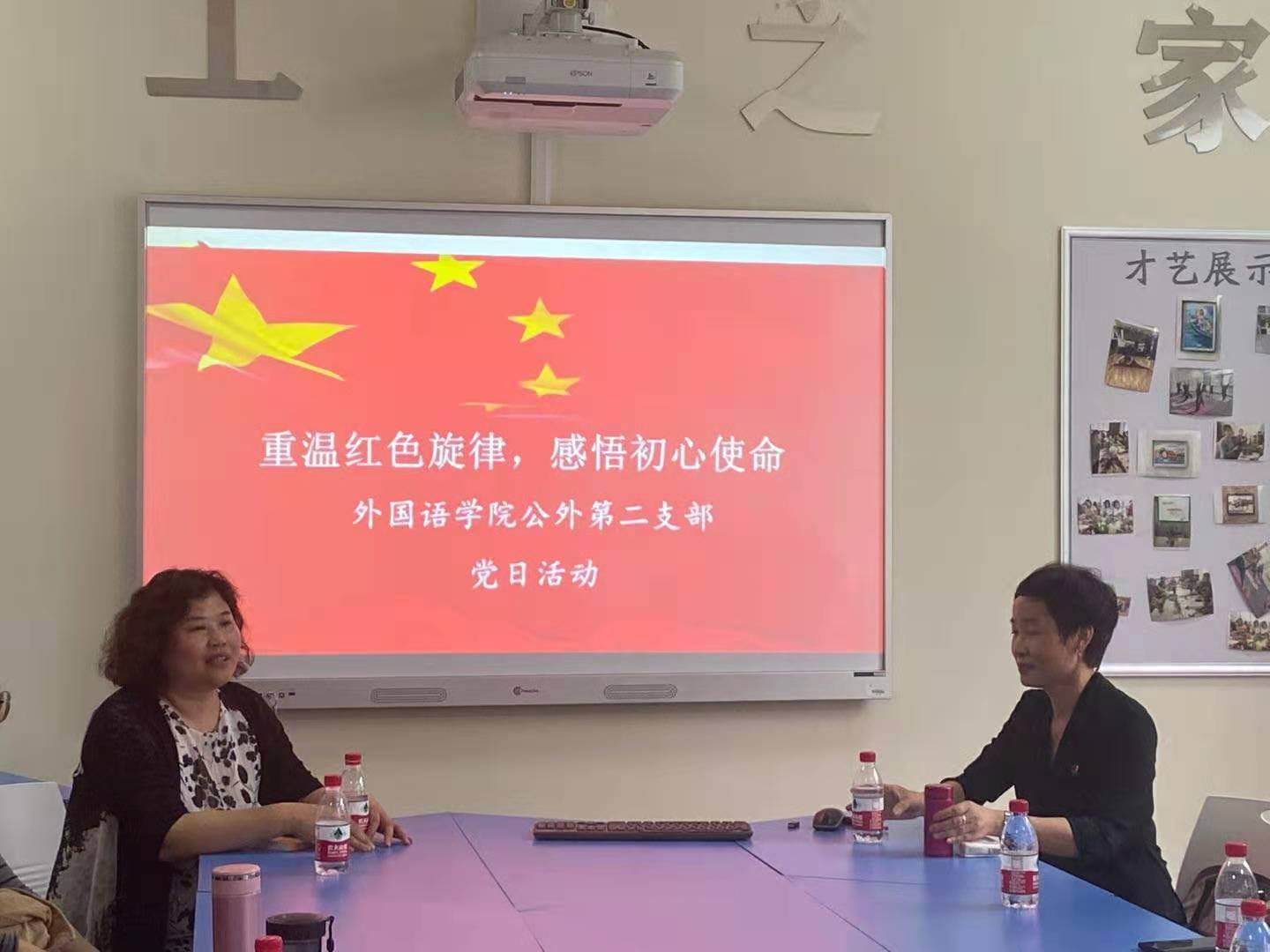 2021年5月27日下午,公外教师第二党支部在教学楼A322开展了一次“重温红色旋律、感悟初心使命”党日主题活动。公外教师第二党支部全体党员及非党员骨干教师参加了此次活动。支部书记王凤英主持了此次活动。
