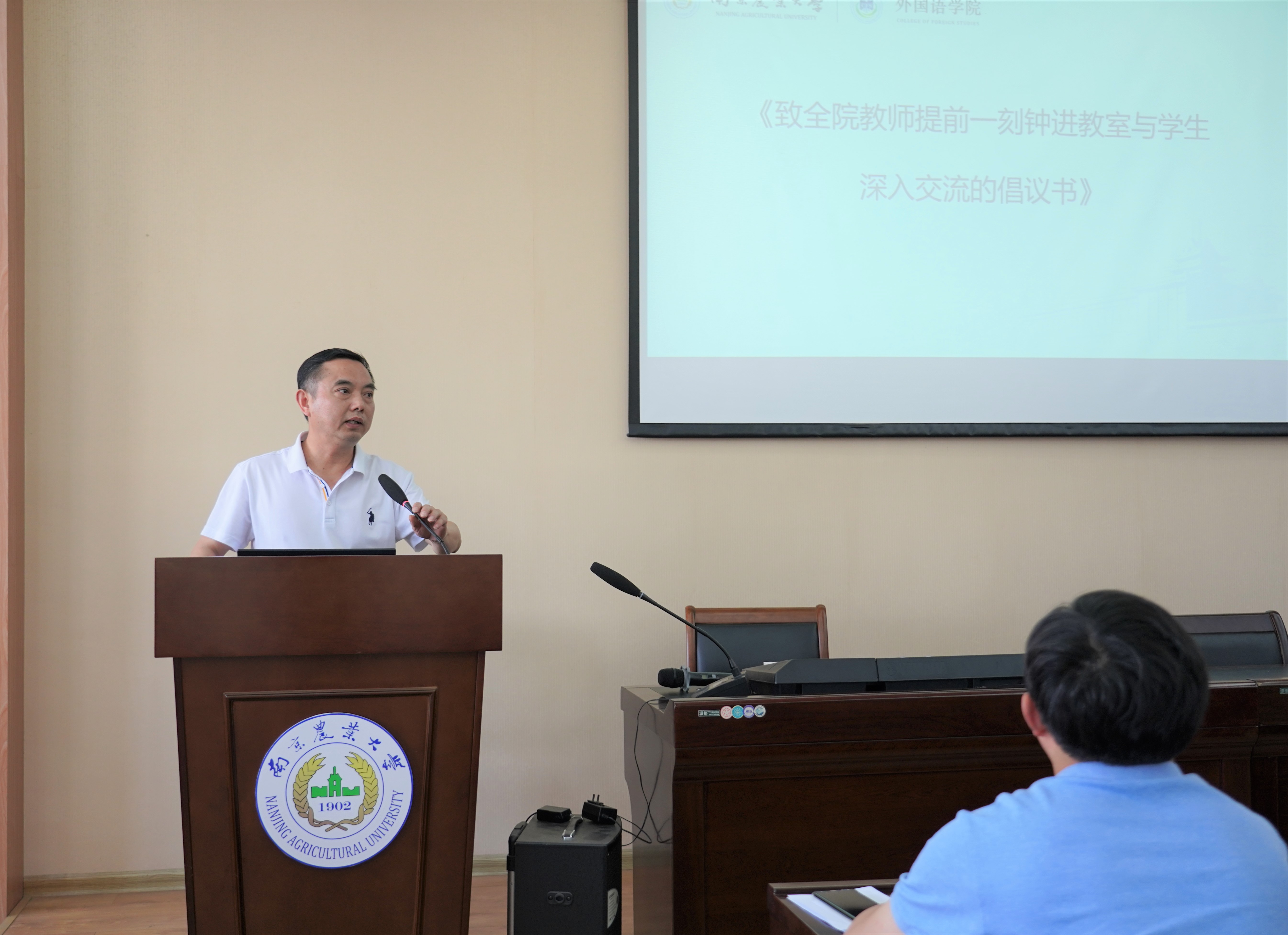 教师师德失范行为处理办法》等文件,她要求学院的每位教职工要认真参加此次专题学习,进一步坚定理想信念、厚植爱国情怀、涵养高尚师德,把师德规范内化于心,外化于行,争做学生健康成长的引路人和师生服务的贴心人。游衣明副院长代表学院宣读了《致全院教师提前一刻钟进教室与学生深入交流的倡议书》,号召广大教师积极发挥课堂的主渠道作用,鼓励教师提前一刻钟进入教室,与学生一对一、面对面的进行深入交流、谈心,了解学生的所思、所想、所需,帮助学生解决实际问题和困难,切实关心关爱学生成长。