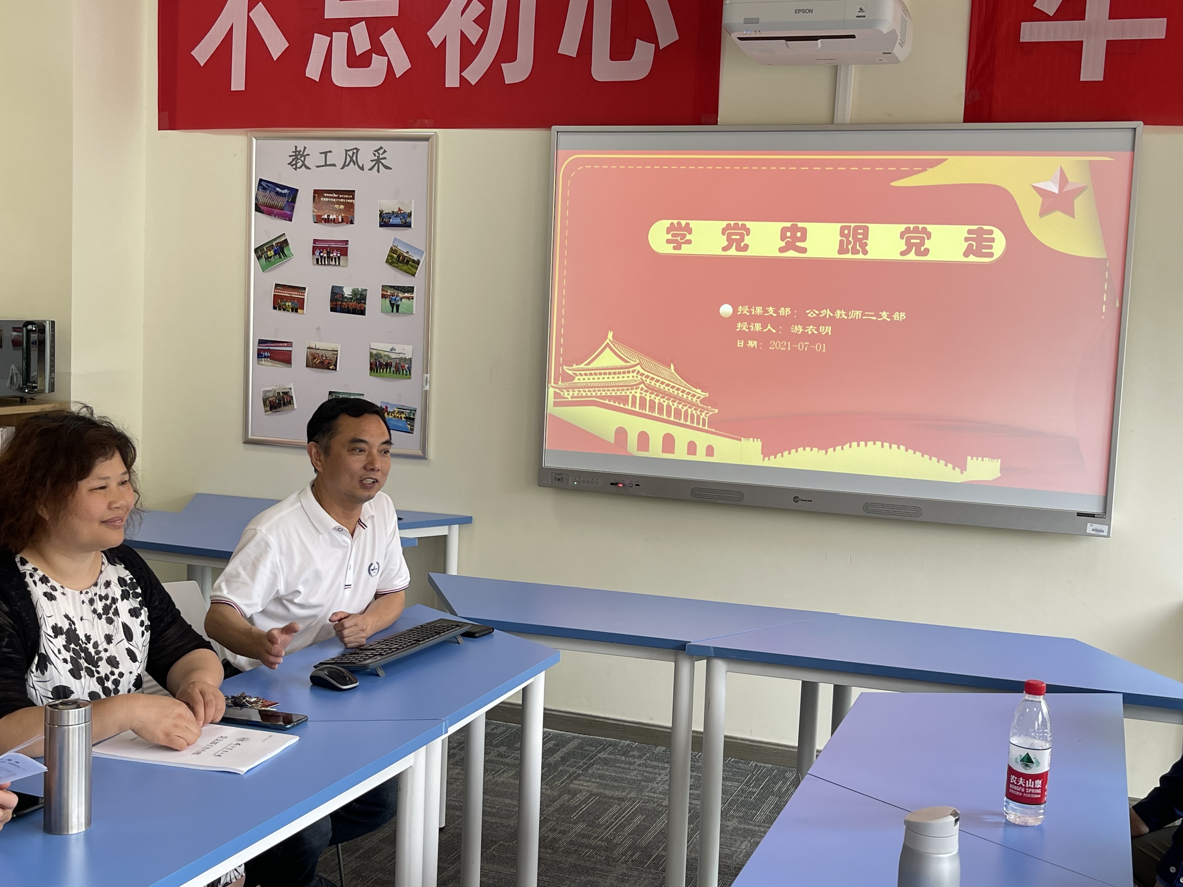 游衣明副院长在学院党员活动室为公外教师二支部党员讲授了题为“学党史跟党走”的专题党课。