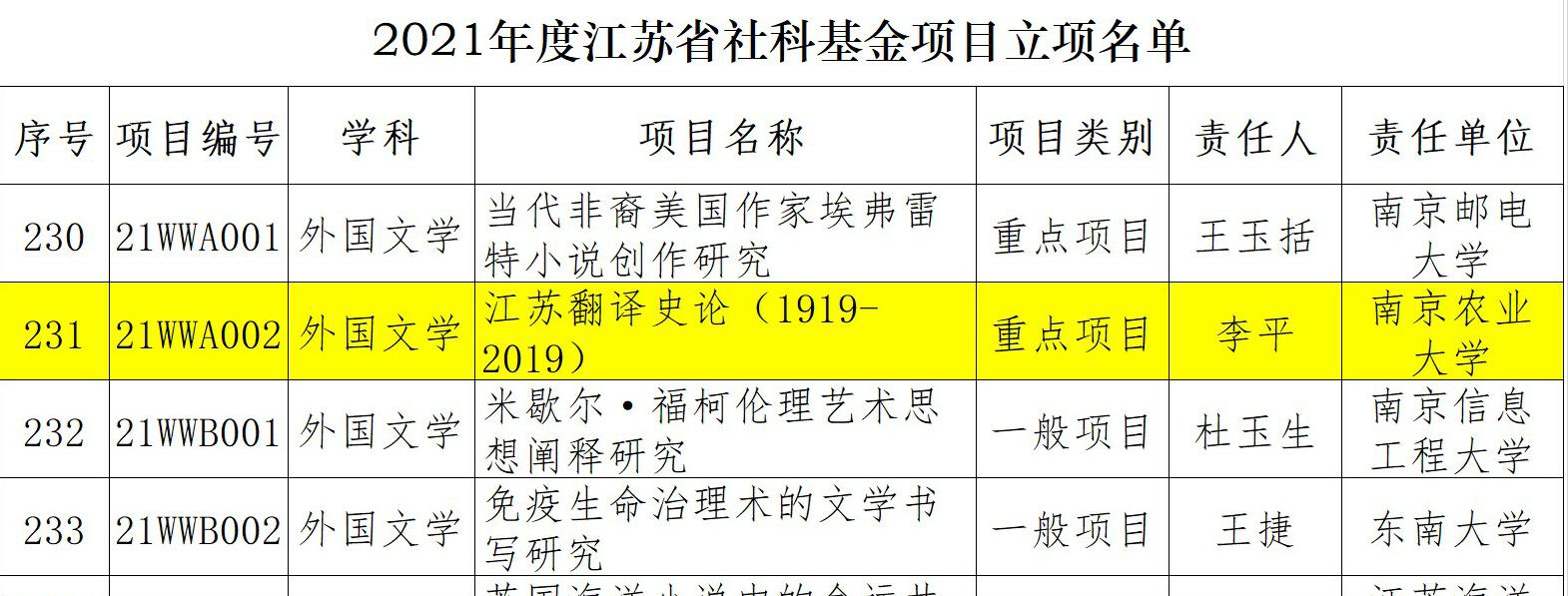 李平教授主持申报的《江苏翻译史论(1919-2019)》获江苏省社科基金重点项目立项,这是草榴社区