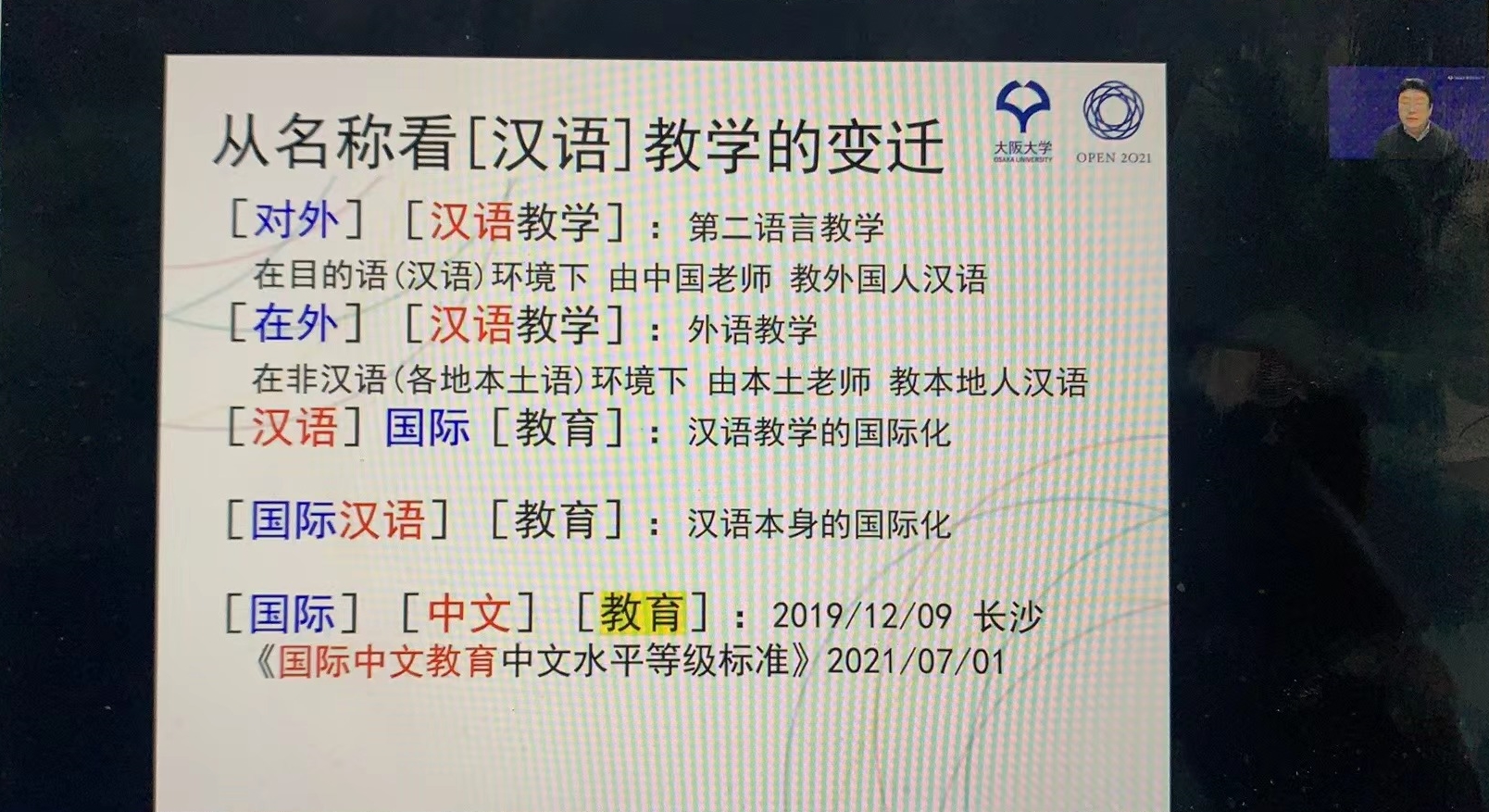 古川教授从日汉语教学的“三教jiāo”问题、近代150年来的在日汉语教学史、在日汉语教学的本土化程度三个方面展开。他首先明确了教学意义上“对外汉语”和“在外汉语”的内涵区别,并概括、梳理了明治维新后至今约150年以来在日“中国语”教学史,介绍了在日汉语教学的本土化方面的情况。古川教授分别从教师、教材、高考三个方面分析了在日汉语教学面临的形势,教师层面的专职教师少、本土教师多、教师专业背景不一,教材层面缺乏初中高连续系统性经典性教材,高考方面近年来汉语被列为一门可供考生参加高考的“二外”语言,在日汉语教学也有着众多的机会。