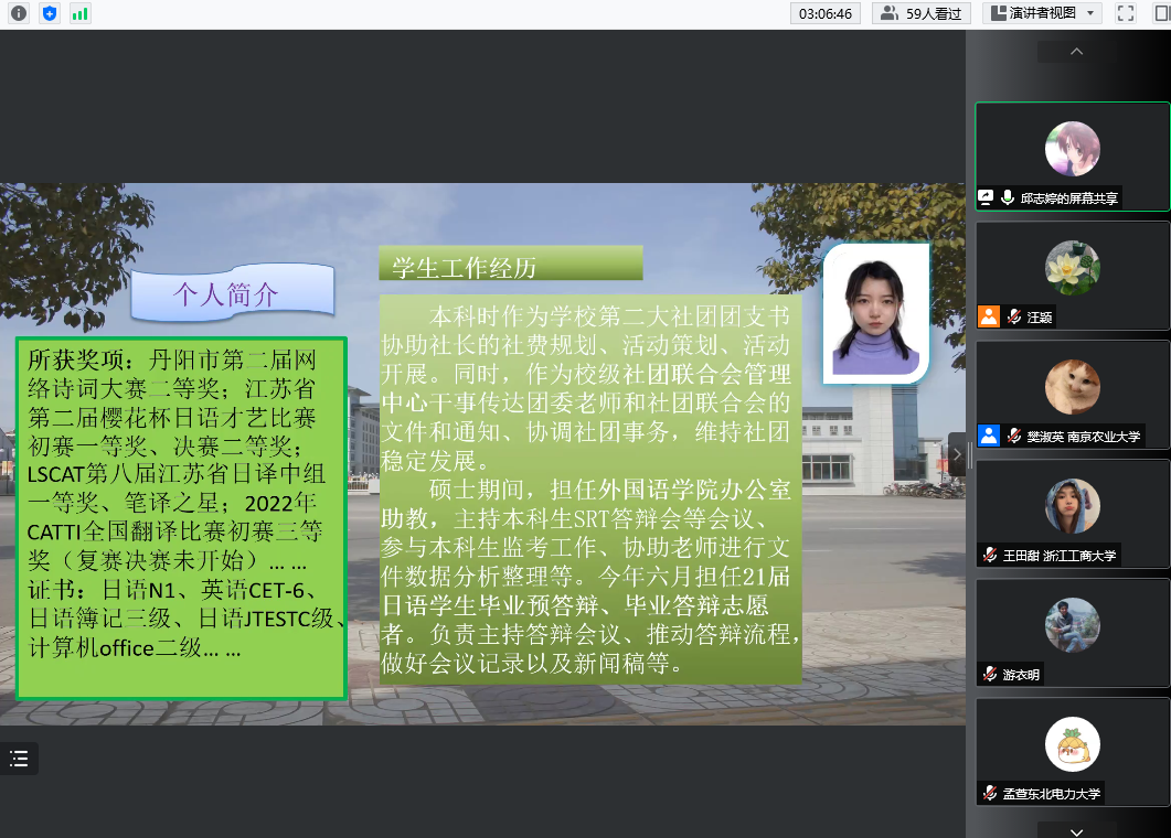 在读研究生代表分享学习和生活情况