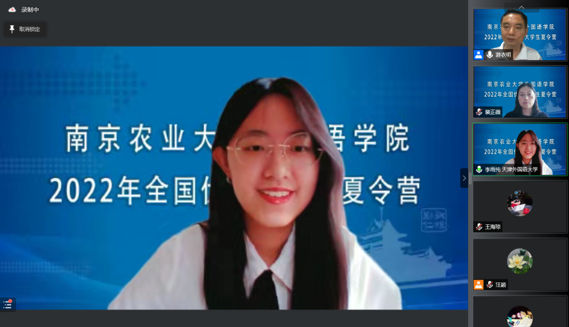 举行了夏令营闭营仪式。裴正薇宣读了优秀营员名单。八位营员代表作了发言,回顾了此次夏令营活动,交流了个人的感悟和思考,对学院提供学习交流平台表达了感谢。裴正薇在本次夏令营活动总结致辞中肯定了各位营员的综合实力,向所有营员表示祝贺,并激励大家始终保持团结友爱、求知进取、奋发有为的精神风貌。最后,她向各位同学发出邀请,欢迎大家选择美丽的南农校园深造学习。夏令营闭营仪式由副院长游衣明主持。