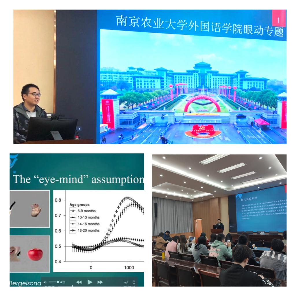 姚继阳从眼动追踪的原理和方法,眼动事件的定义,眼动研究实例,经典的眼动实验范式,数据质量,Eyelink眼动追踪系统等方面对眼动进行了详细的介绍。首先着重向师生介绍了眼动实验的原理与应用,基于眼动开展的相关实验,用直观、易懂、可视化的方式向师生们呈现眼动的轨迹路线,接着讲解了影响数据质量的人为因素,受试选择的要求等,最后介绍了Eyelink设备的构件组成,参数设置,实际操作以及配套软件等。