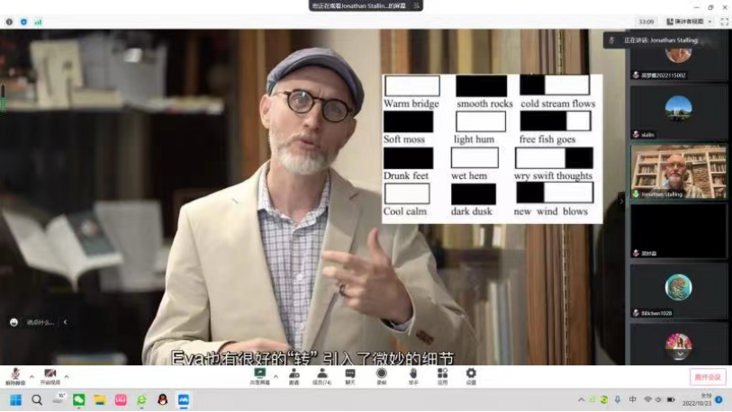 石江山针对词汇收集、诗句创作等话题与师生进行实时交流,并一一回答了大家提出的问题。他的讲座生动有趣、精彩纷呈,对中国经典诗歌的海外传播具有重要意义。