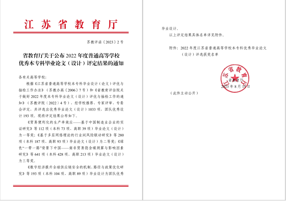 江苏省教育厅近日发布了2022年度江苏省普通高校优秀本专科毕业论文(设计)的评定结果,我校共获优秀毕业论文(设计)19项,其中草榴社区