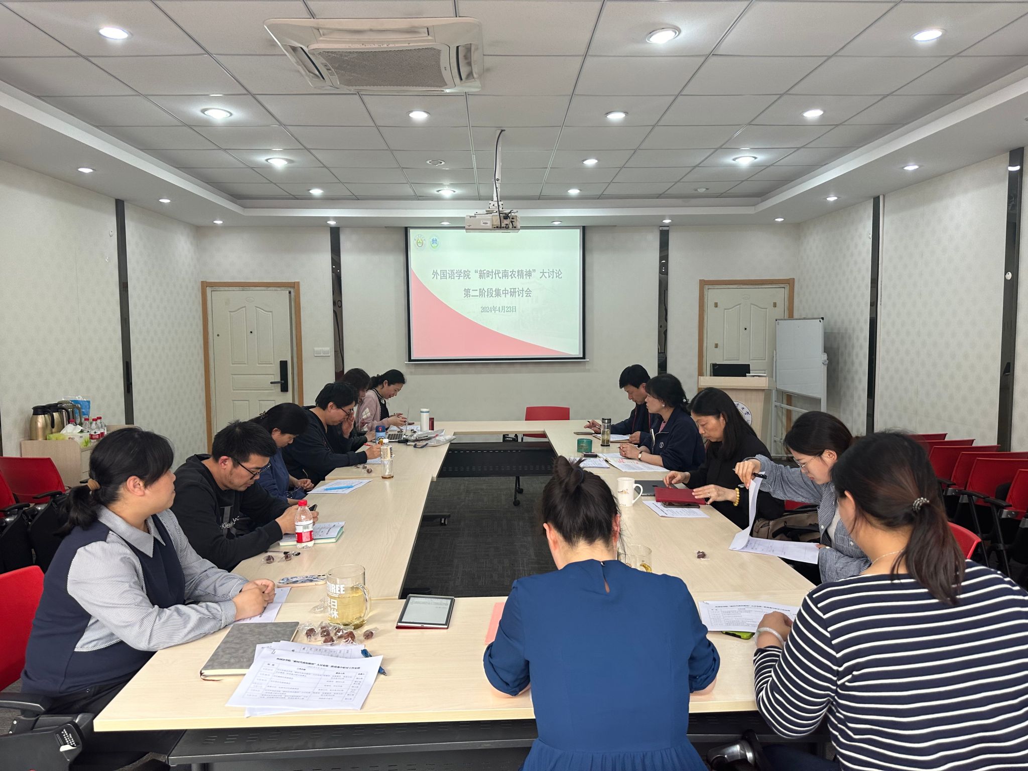 在教学楼A310会议室召开“新时代南农精神”大讨论第二阶段集中研讨部署会暨党纪学习教育动员部署会。学院院领导、院党委委员、系部主任、党支部书记等参加会议。会议由院党委书记董红梅主持。