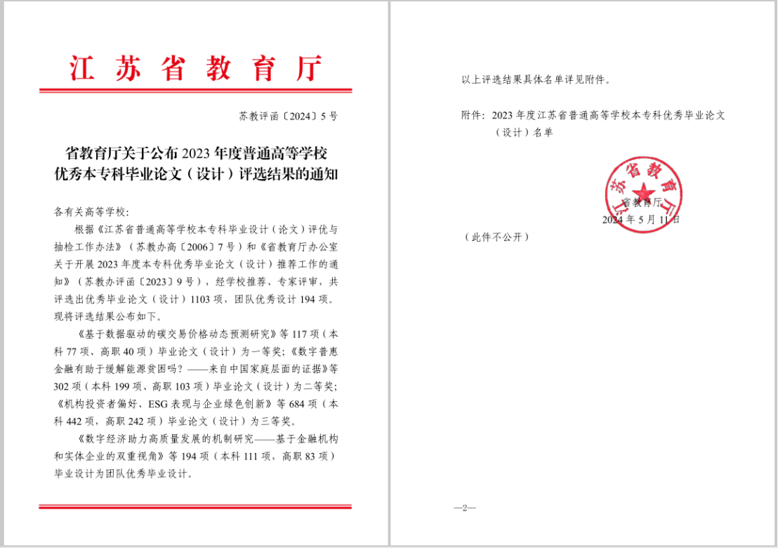 近日,江苏省教育厅公布了2023年度普通高等学校本专科毕业论文(设计)抽检和优秀认定结果。草榴社区