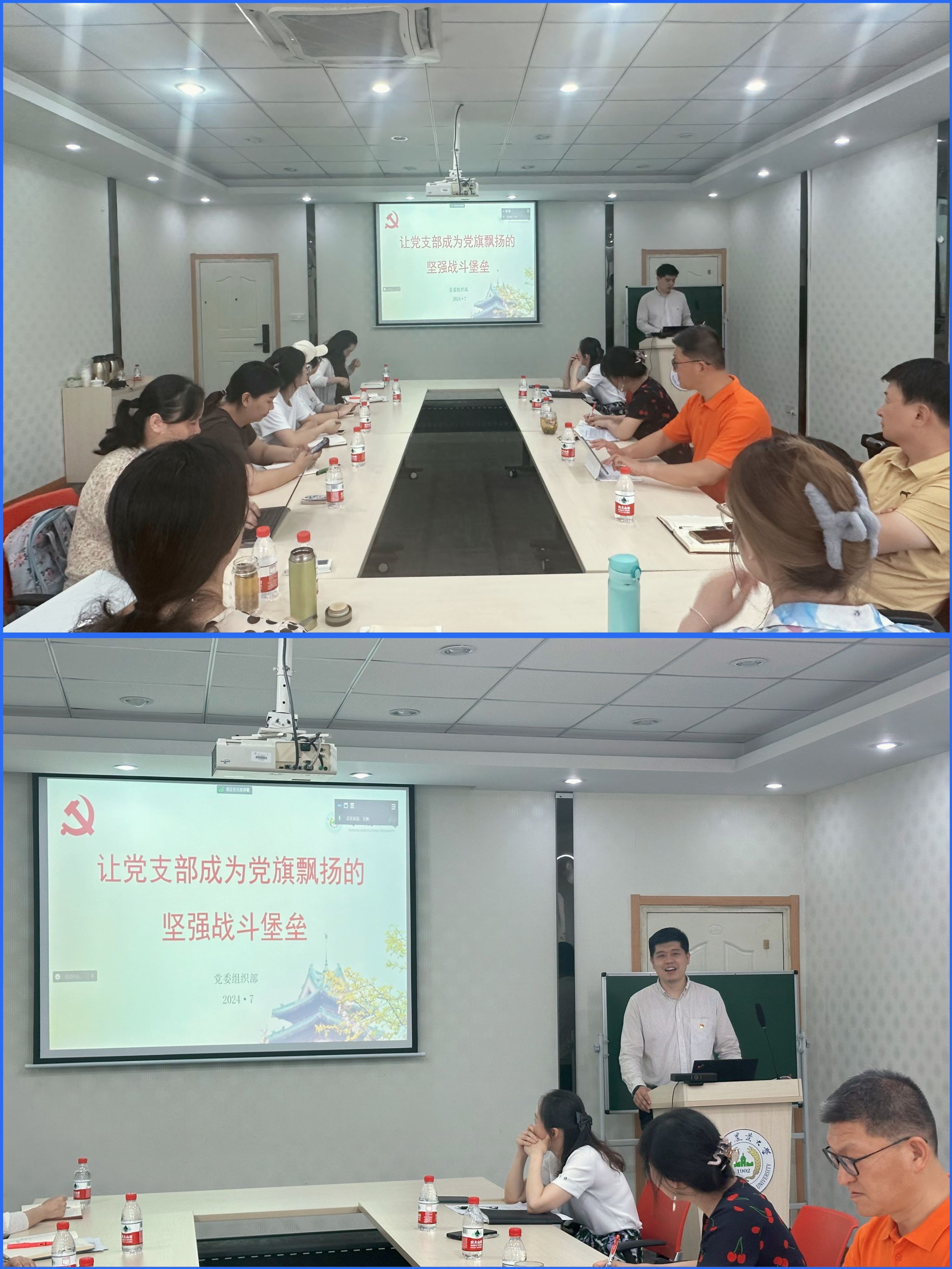 何旭以《让党支部成为党旗飘扬的坚强战斗堡垒》为题作专题辅导报告。报告主要内容有高校党支部建设的发展历程、高校党支部建设的主要内容、新时代高校党支部建设质量提升路径和如何做好党支部书记等四个部分。他着重介绍了党支部的性质、基本职责和建设要求,结合党支部的“三会一课”、主题党日活动、党员发展与党员教育、组织生活会和民主评议党员等常规工作作了详细说明;强调要充分认识高质量党建工作对引领学院发展的重要意义,要以“七个有力”为标准提升党支部建设质量,通过科学化的工作体系和高效的管理方法来解决实际工作中的困难。