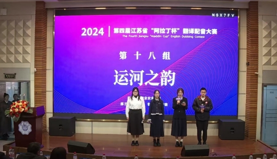 “阿拉丁杯”翻译配音大赛由江苏省高等学校外国语教学研究会、江苏省翻译协会、南京学府翻译有限公司主办,江苏阿拉丁留学咨询有限公司承办。此次决赛以“大运河”为主题,参赛团队的作品选题契合“大运河传承中国文化”的主旨,与中国传统文化紧密相扣,传扬以爱国主义为核心的团结、和平、勤劳、勇敢的中华民族精神。在第四届配音大赛初期,省内近40所高等院校、一万八千多名学生踊跃报名参加,网络关注度持续上升,全网热度达300万人次。我校选送的《运河之韵》配音团队聚焦运河沿岸的人文生活,通过挖掘纪录片中大运河沿线城市的故事,用英语展现各地的风土人情和文化特色。最终,《运河之韵》团队荣获决赛三等奖的优秀成绩。