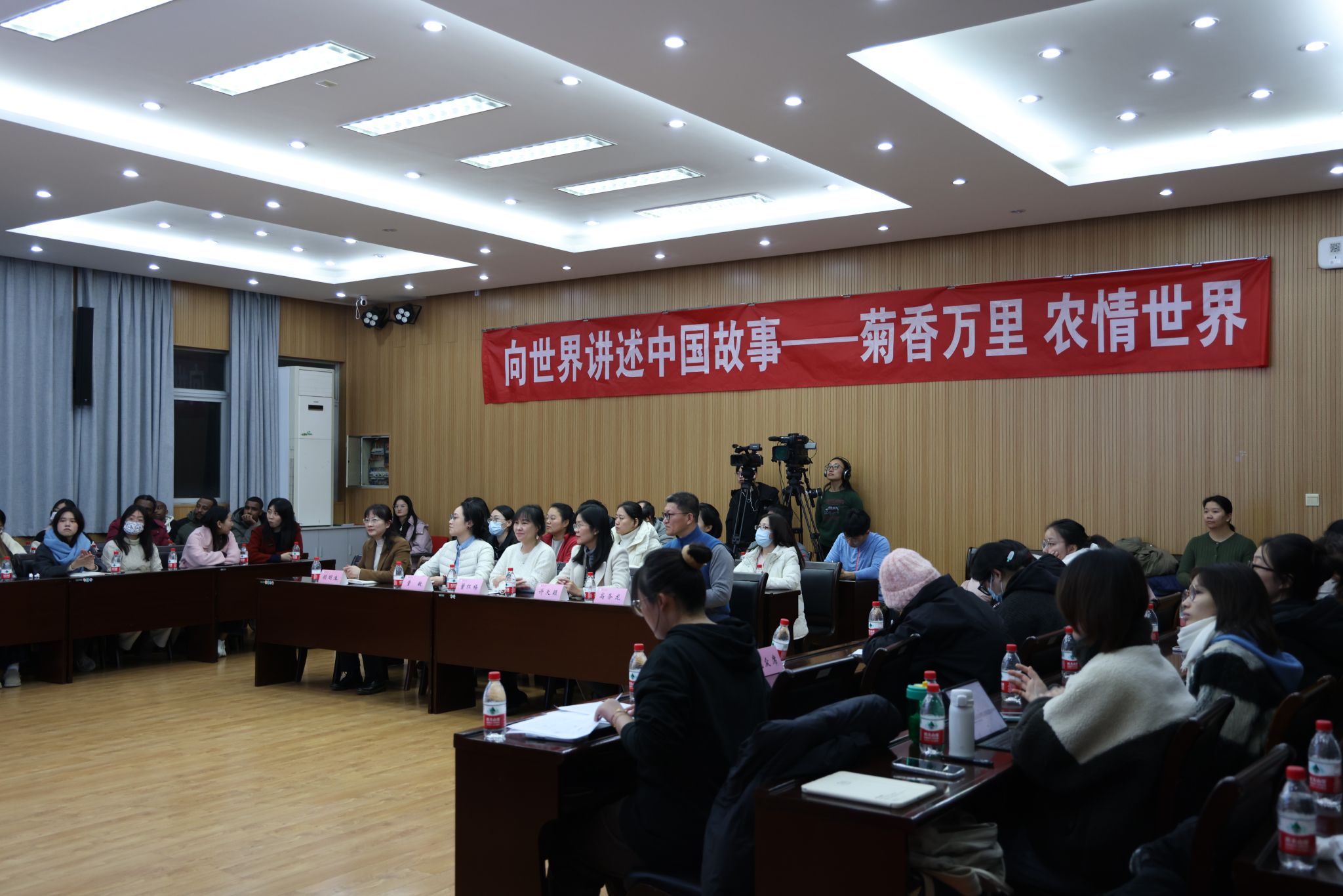 “向世界讲述中国故事”师生宣讲团,以“菊香万里,农情世界”为主题,追溯菊文明、传播菊文化,通过中英文诗歌朗诵、现场书法展演、菊花茶品鉴等多种方式,将文化传播与文化体验相结合,全景式地展现了菊花在中华优秀传统文化中的意义象征、精神内涵,南农菊花的育种栽培和产业之路,展现可信、可爱、可敬的中国形象。第五期农业农村部外派人员能力提升培训班学员代表、学校4个国家和地区的来华留学生、国际教育学院与草榴社区