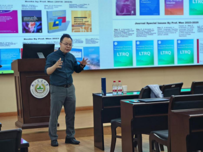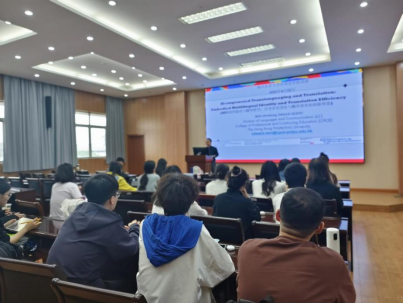 邀请香港理工大学专业及持续教育学院语文及传意学部副主任温植胜教授在教学楼七楼报告厅做了题为“AI赋能的超语与翻译研究:具身多语身份与翻译效率的创新探索”的学术讲座。讲座由副院长马秀鹏教授主持。