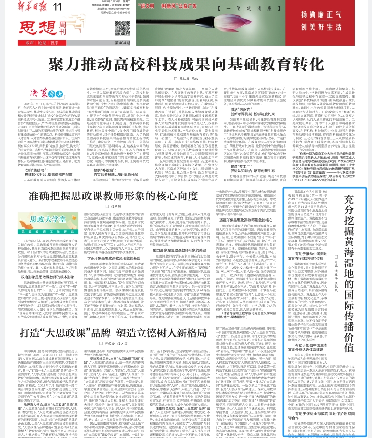 教授王银泉为通讯作者的署名文章《充分挖掘黄海湿地的国际传播价值》。