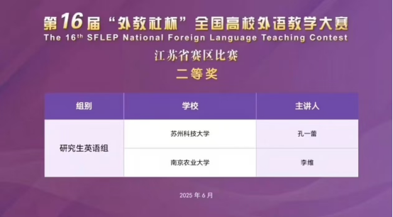 2025年6月7日,第十六届 “外教社杯” 全国高校外语教学大赛江苏赛区获奖名单正式揭晓。草榴社区