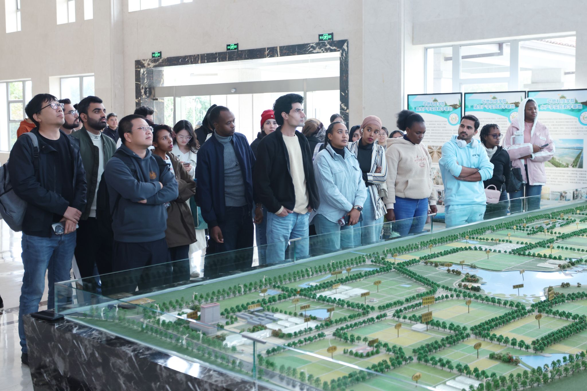 在白马教学科研基地参观环节,师生们先通过办公楼沙盘展示与PPT讲解,全面了解基地规划布局及科研平台建设情况;随后深入田间地头,实地考察智慧农业运行实况,切身感受现代农业科技的生动场景。