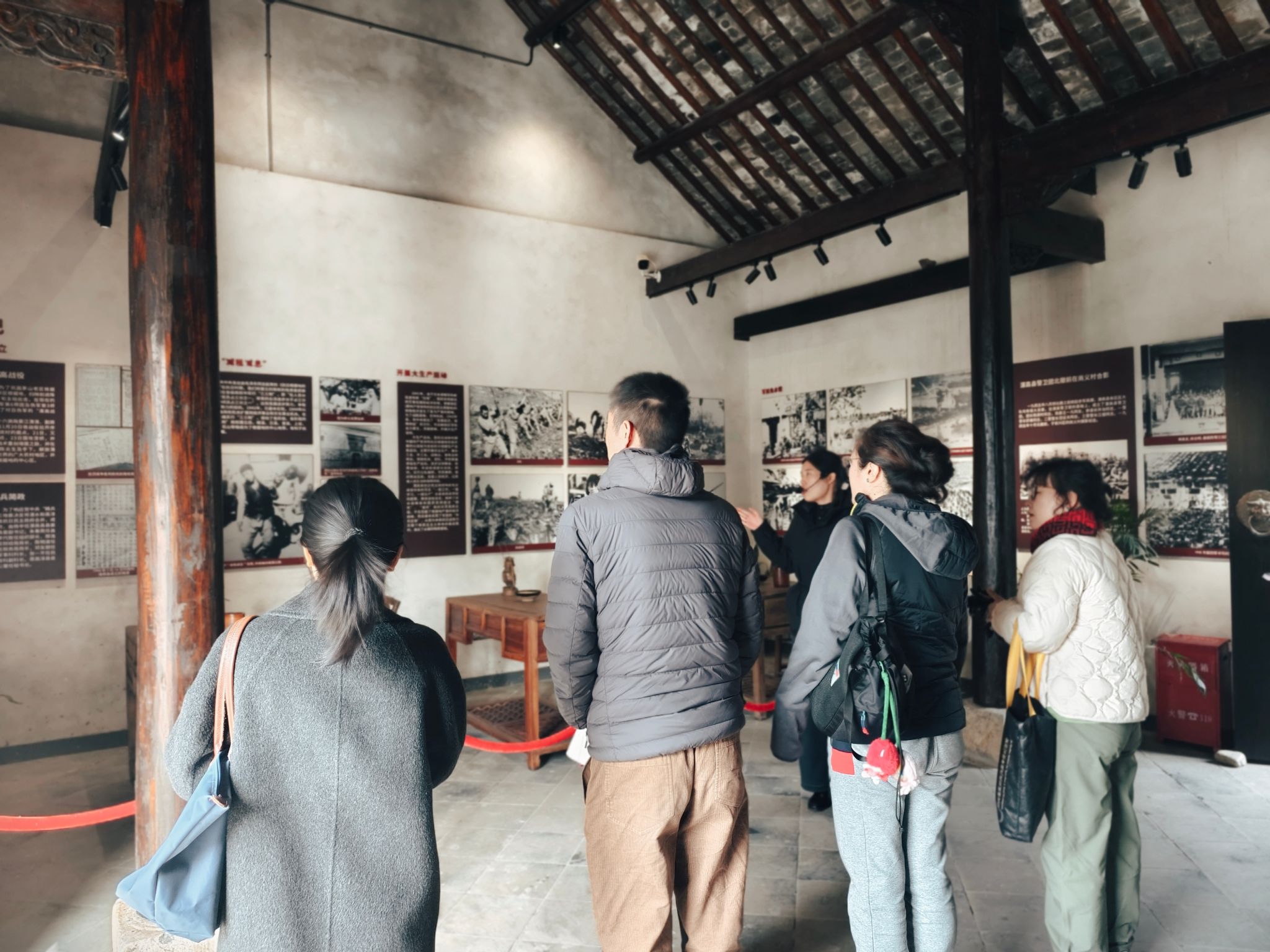 在讲解员的引导下,党员们依次参观了溧高县抗日人民政府旧址、弘毅馆与西舍红色文化陈列馆等纪念场馆。透过详实的历史资料与生动的现场讲解,大家深入了解了溧高县委合并后积极建立各级党组织、政权机构、工厂学校与地方武装,有力支援苏南和浙西地区抗日斗争的光辉历程,深受震撼。在聆听陈毅司令员三赴西舍村筹款筹粮、宣传抗日的感人事迹时,不少党员为之动容。红色文化陈列馆内,西舍村作为“红色堡垒村”的革命脉络清晰可见——从党组织的建立到民兵武装的斗争,从人民群众的倾力支援到革命火种的代代相传,全体党员沉浸其中,深切感悟到革命先辈深沉的家国情怀与坚毅的责任担当。通过这场沉浸式学习,党员们共同重温了那段艰苦卓绝、波澜壮阔的峥嵘岁月。