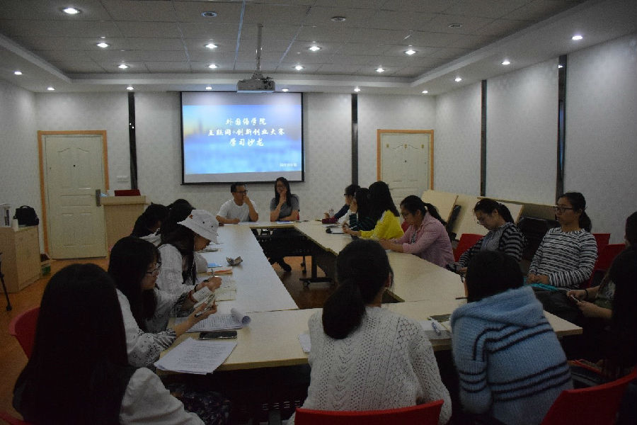 参加“互联网+”创新创业大赛的17名学生进行了赛事的培训和指导。沙龙由兼职辅导员甄亚乐主持。