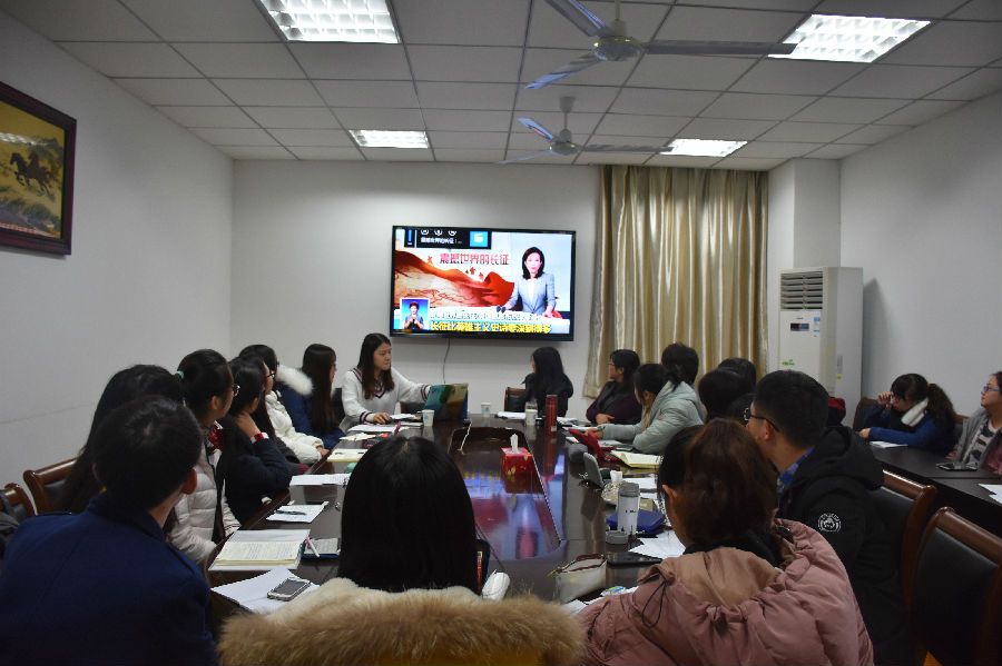 会议伊始,韩纪琴教授向师生党员介绍了本次研讨会的背景和意义,鼓励党员同志们踊跃发言,分享和交流感悟体会。随后,学生党员分别对《西行漫记》、《长征—英雄与信仰的史诗》、Red Star Over China等长征书籍中推荐段落的翻译成果进行了展示,由教师党员对其翻译过程中存在的问题提出指导性意见,并提出了在发音、语法、翻译技巧等方面的建议。接着,师生党员共同观看了名为“震撼世界的长征”的新闻视频,随后,部分党员同志对长征精神交流了自己的见解和感悟;最后,师生党员共同在明信片上书写下自己对长征精神的理解和此次读书研讨会的收获。最后,韩纪琴教授对此次研讨会进行了总结,并号召党员同志们牢记长征精神,不忘初心,砥砺前行。