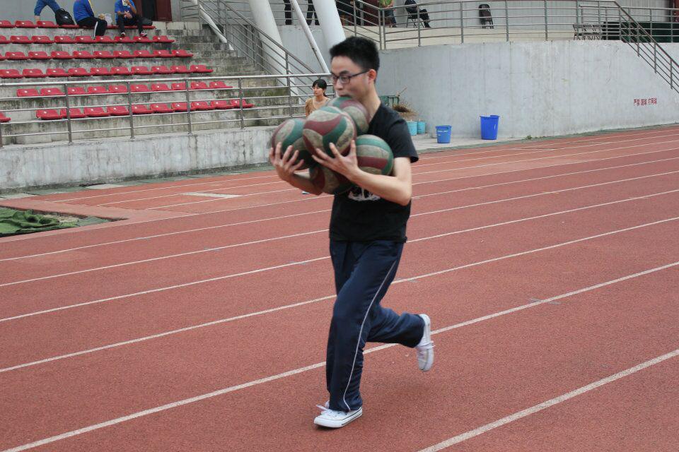 在抱球接力比赛中,外语院的八个小伙伴动作娴熟,抱球有力,最后获得了第八名的好成绩。