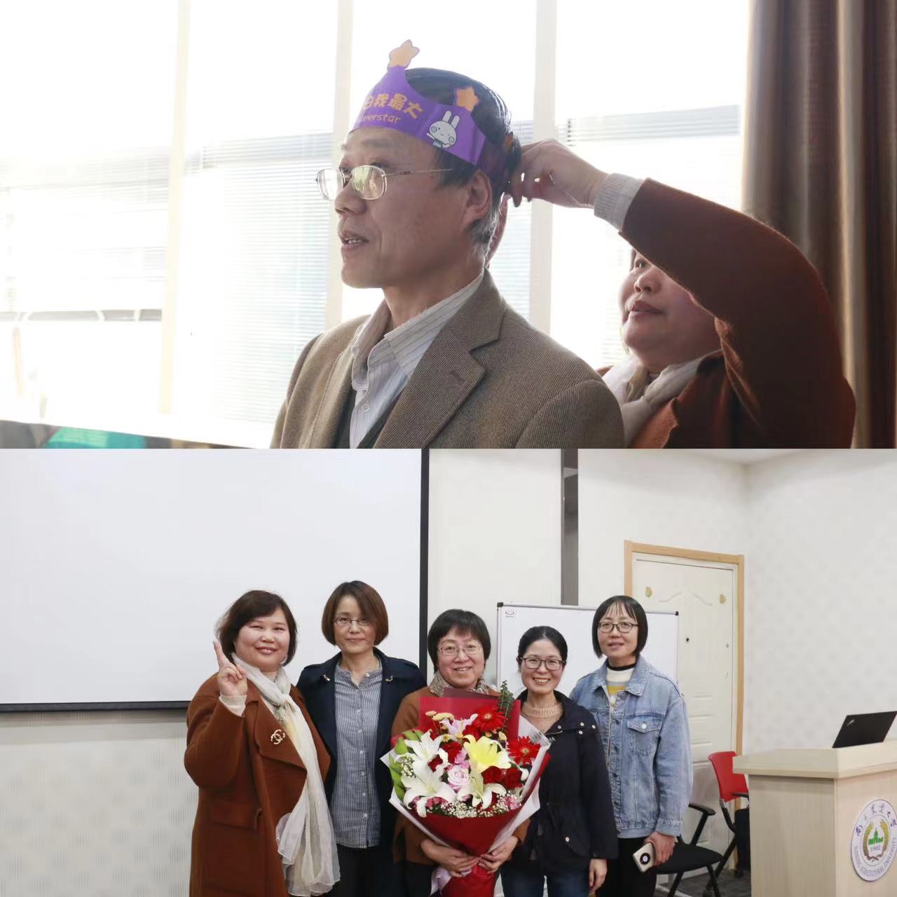 “迎新-欢送-整岁庆生”活动如期举行,两位新进教师、五位退休教师、六位在职教师以及学院党委书记朱筱玉、院长裴正薇、副书记韩立新、副院长游衣明、马秀鹏参加了活动。